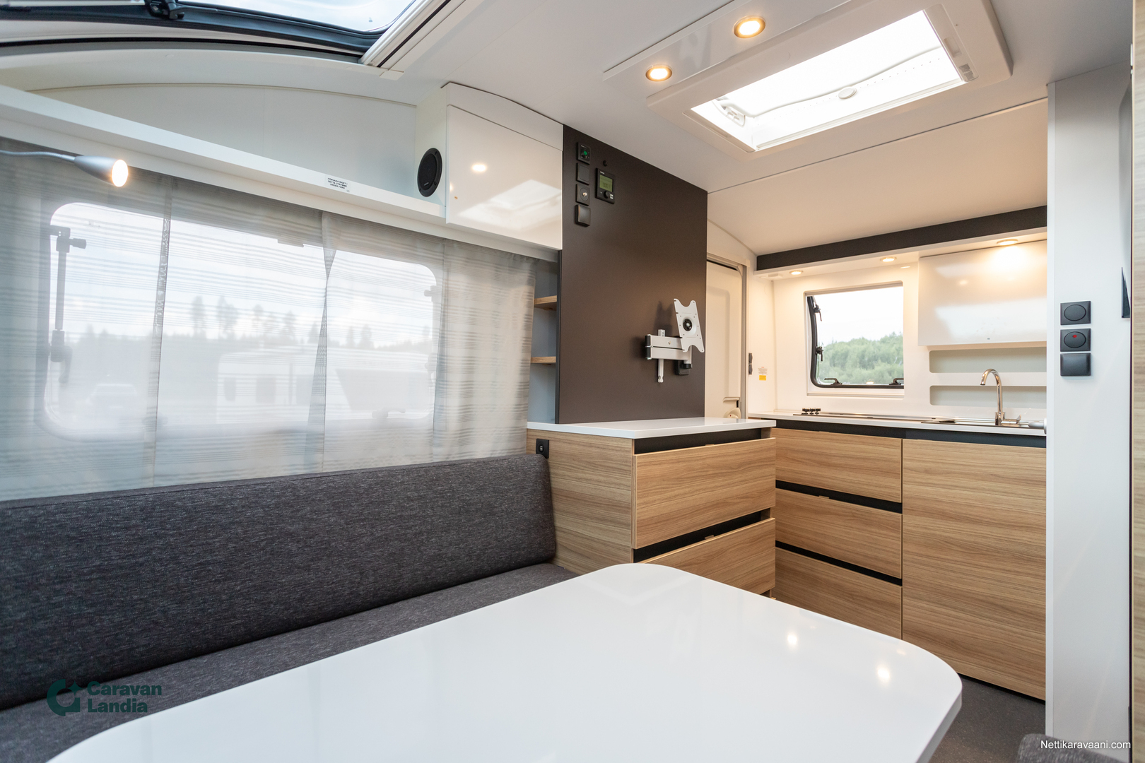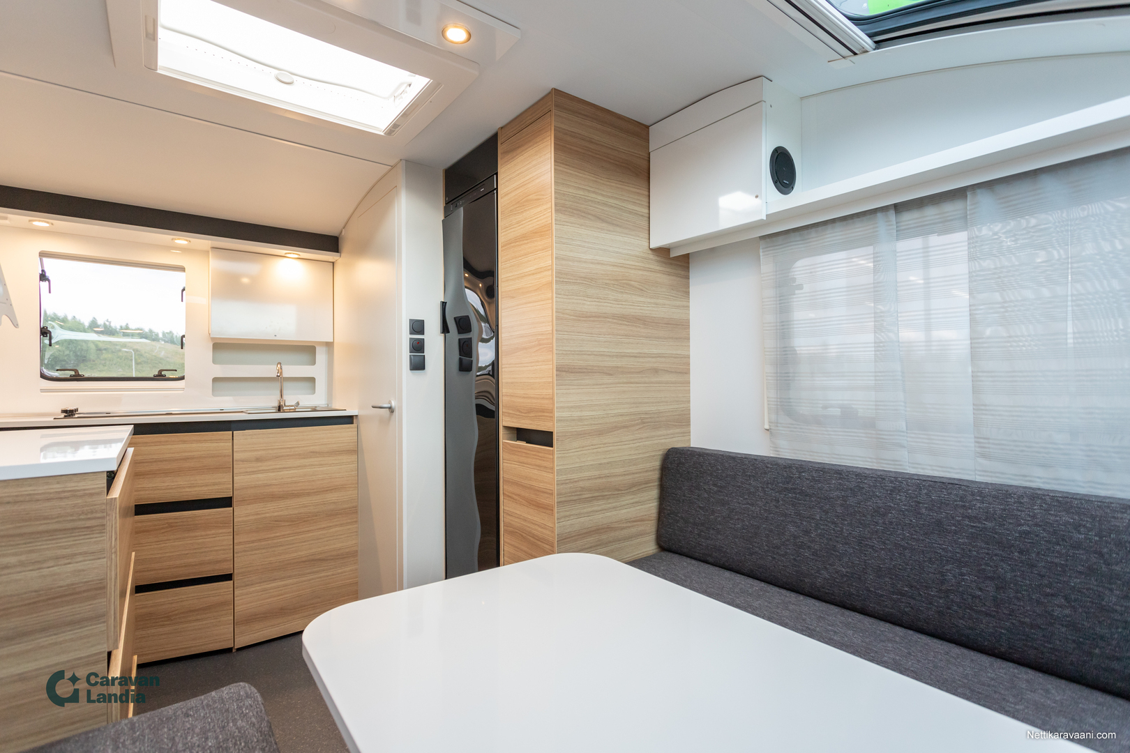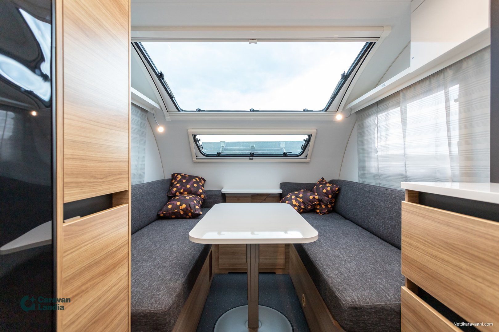 391 LH ** TRUMA-SÄHKÖPATRUUNA, ERILLISVUOTEET, ISO-PÖYTÄRYHMÄ ** Huipputyylikäs ja näppärä vaunu erillisvuotein, joista Matkailuvaunu