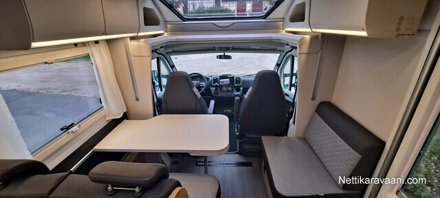 Sisätilat ja mukavuudet: Ohjaustehostin, Sähkökäyttöiset ikkunat, Stereot, Vakionopeudensäädin, Ajotietokone, Pysäköintitutka, Sähköpeilit, Kasetti WC, Suihku, Lämminvesiboileri, TV-antenni tai lautasantenni, Ilmastointi ajotilassa, Liesi, Jääkaappi, Pakastelokero, Parivuode, Kasettiverhot, Lattiamatot asunto-osassa, Pesuallas, Pysäköintikamera, Keskuslukitus: Kaukosäätöinen, Ilmastointi: Manuaalinen