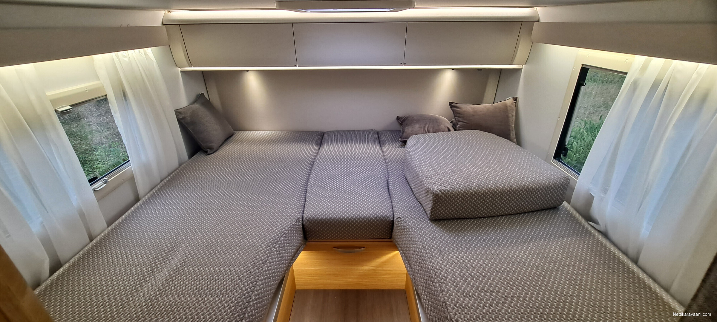Vuokrataan ympärivuotiseen käyttöön sopiva, uusi 4:lle henkilölle rekisteröity matkailuauto. Takatilassa erillisvuoteet, jotka saa myös yhdeksi isoksi sängyksi jolloin sopii jopa kolme nukkumaan. Sähköisesti alaslaskettava etutilan parisänky.