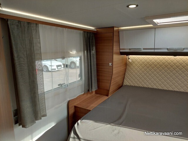 Sisätilat ja mukavuudet: Ohjaustehostin, Keskuslukitus, Lohkolämmitin, Vakionopeudensäädin, Ajotietokone, Penkinlämmittimet, Navigaattori, Kasetti WC, Suihku, Lämminvesiboileri, Markiisi, TV-antenni tai lautasantenni, Ilmastointi ajotilassa, Liesi, Jääkaappi, Pakastelokero, Parivuode, Kasettiverhot, Lattiamatot asunto-osassa, Pesuallas, Pysäköintikamera, Ilmastointi: Manuaalinen
