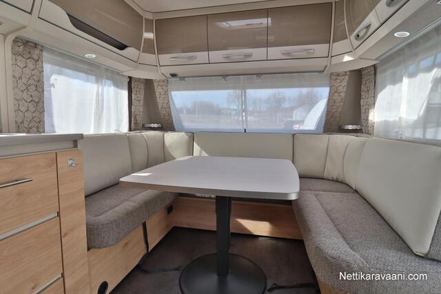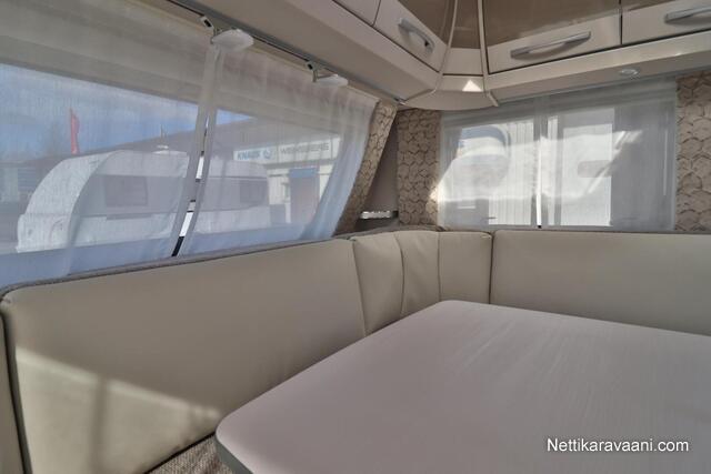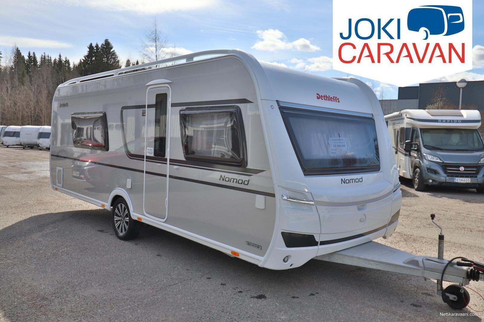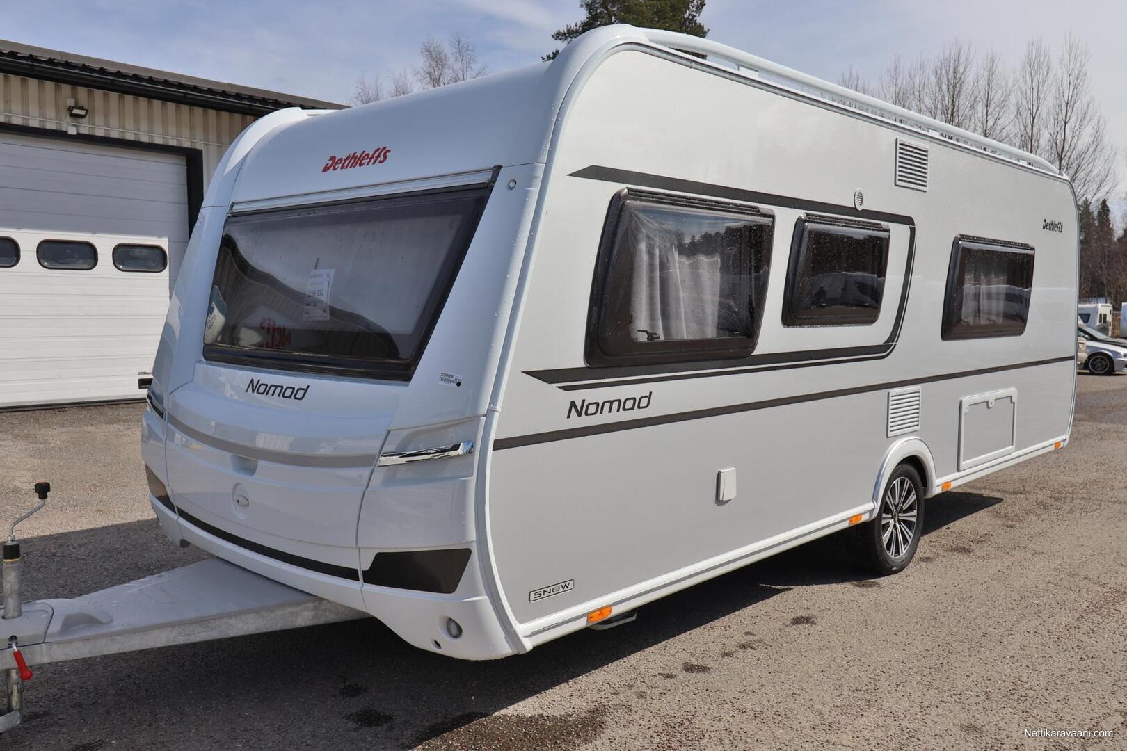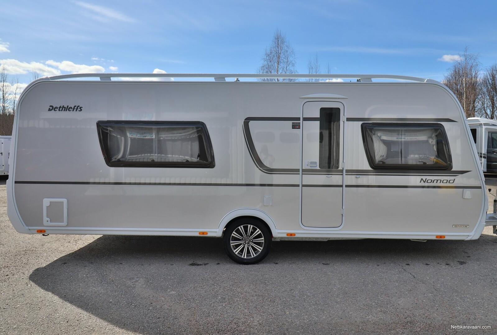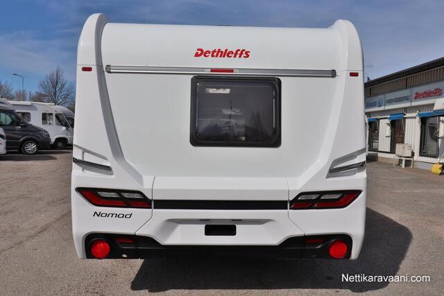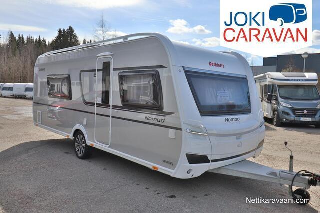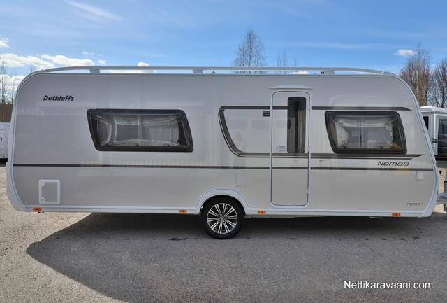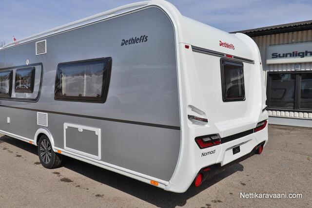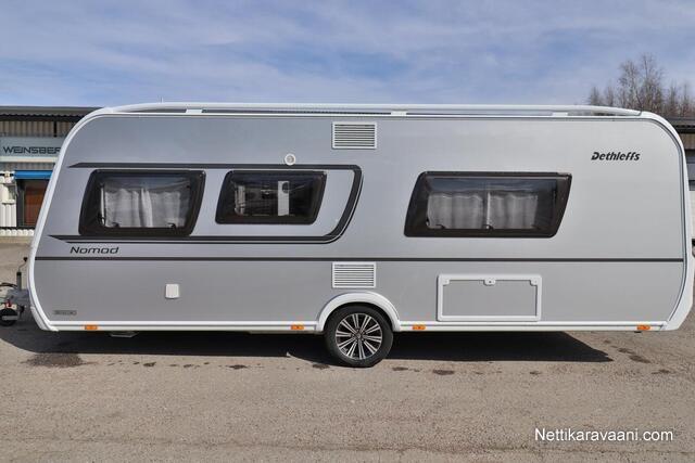 Upea Dethleffs Nomad ympärivuotiseen käyttöön! Käytännöllinen pohjaratkaisu sisältää takana kokoleveän wc / suihkutilan, erillisvuoteet, keittiön ja ison U-pöytäryhmän. Nestekeskuslämmitys kaasulla ja sähköllä sekä nestekiertoinen lattialämmitys.