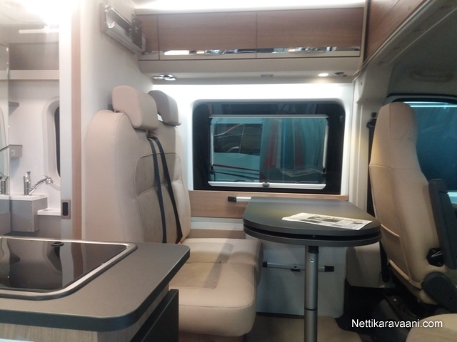 Interior and comforts: Power steering, Central locking, Power windows, Internal socket, Stereo, Cruise control, On board computer, Satellite navigator, Cassette WC, Shower, Hot-water tank, Marquis, TV-antenna tai Satellite dish, Cabin A/C, Stove, Fridge, Freezer, Double bed, Cassette curtains, Carpets in back, Sink, Airconditioning: Automatic