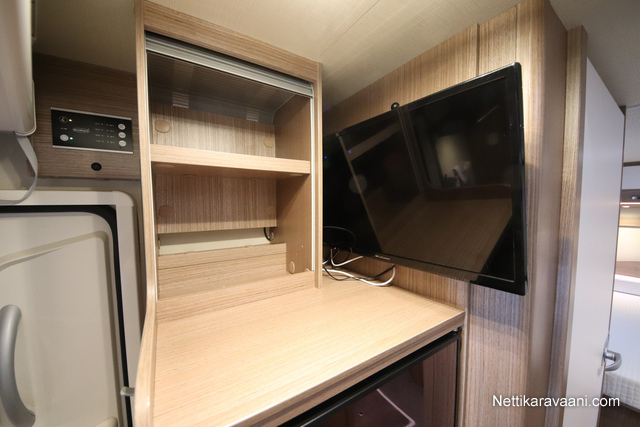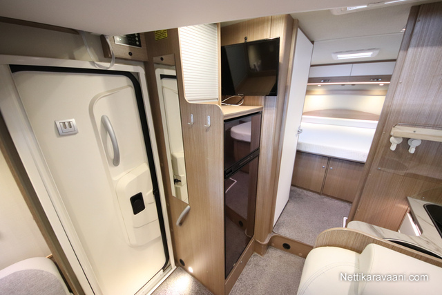 Interior and comforts: Shower, Marquis, TV-antenna tai Satellite dish, Stove, Fridge, Freezer, Parking camera, Airconditioning: Manual