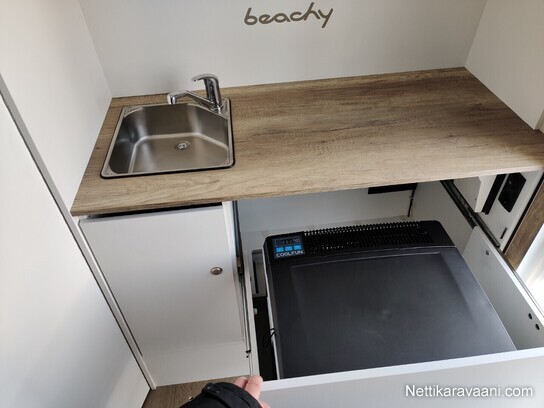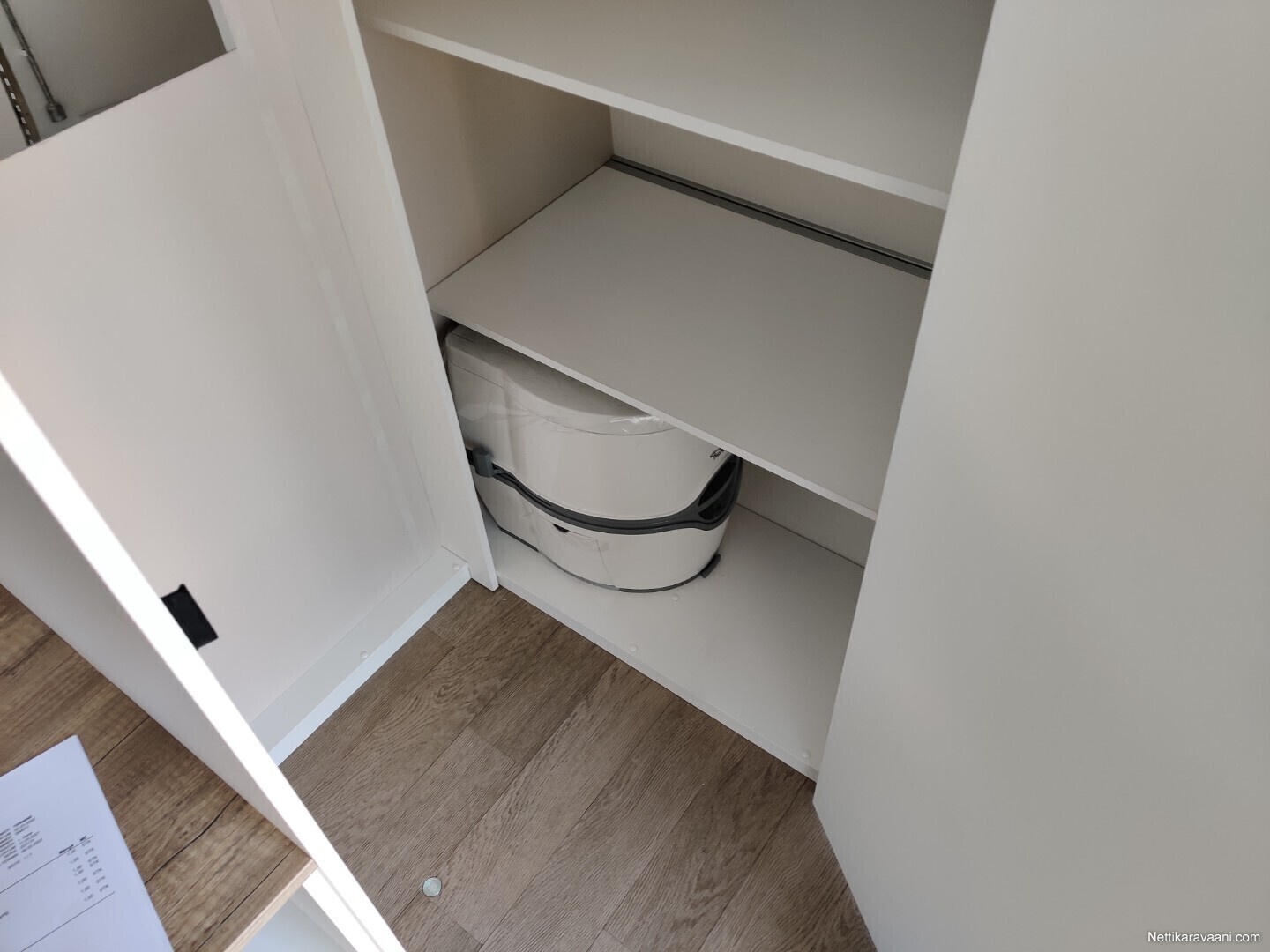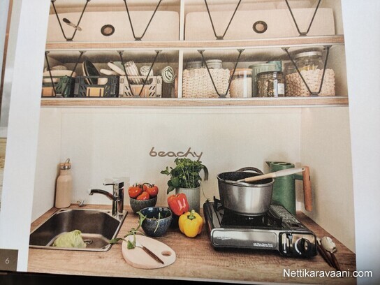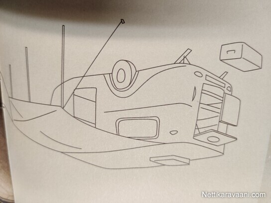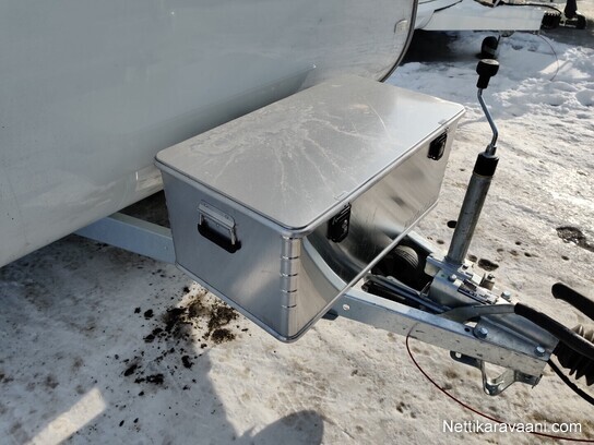 Aisasailytyskotelo alumiinia, DWt-etukatos, Eberchbächer diesel lämmitin, omavaraisuus akkupaketti, Kannettava WC thetford portapotti