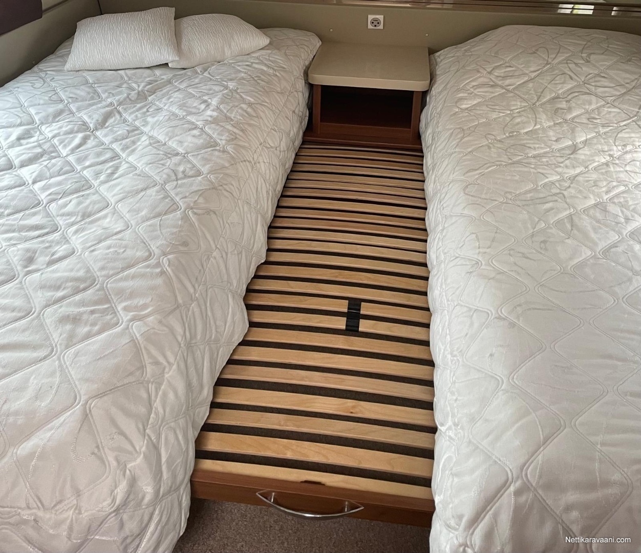 • Nukkumapaikat 4:lle ja lisäpatjalla lisävuode vuoteiden väliinmakuutilassa jossa liukuovi eikä haitariovea (kuvissa näkyy)