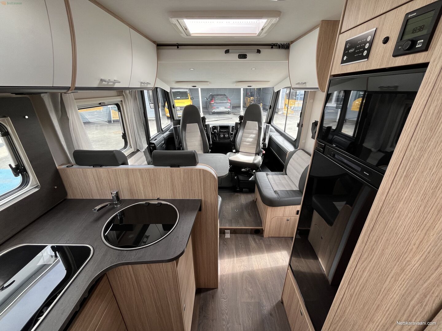 Sisätilat ja mukavuudet: Sähkökäyttöiset ikkunat, Vakionopeudensäädin, Ajotietokone, Lämminvesiboileri, Markiisi, TV-antenni tai lautasantenni, Kasettiverhot, Pysäköintikamera, Ilmastointi: Automaattinen