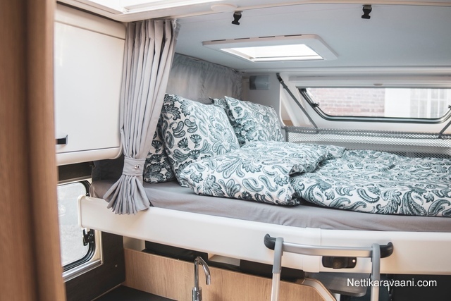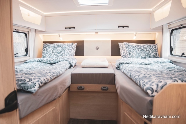 Muut: Kahdet renkaat, Kattoluukku, Turbo, Pyöräteline, Eristetty harmaavesisäiliö, Sähkörappu, Keskuslämmitys, Lattialämmitys, Erillisvuoteet