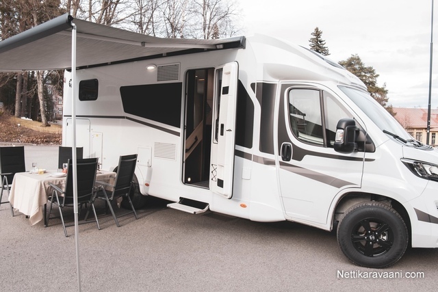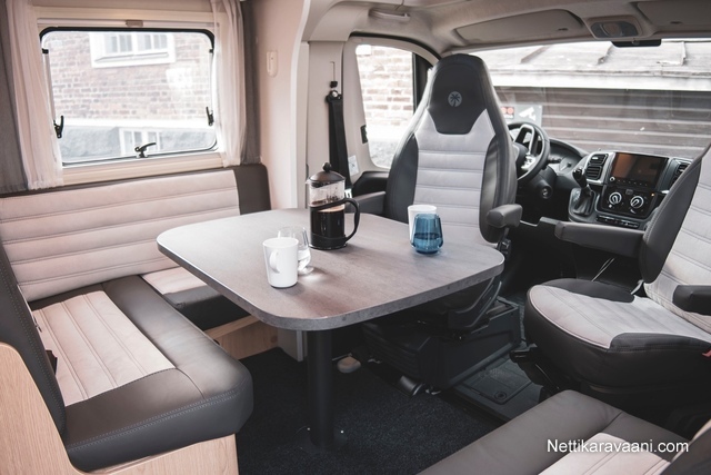 Sisätilat ja mukavuudet: Ohjaustehostin, Sähkökäyttöiset ikkunat, Sisätilanpistoke, Lohkolämmitin, Nahkasisusta, Vakionopeudensäädin, Ajotietokone, Penkinlämmittimet, Sähköpeilit, Kasetti WC, Suihku, Lämminvesiboileri, Markiisi, Ilmastointi ajotilassa, Liesi, Jääkaappi, Pakastelokero, Parivuode, Lattiamatot asunto-osassa, Pesuallas, Pysäköintikamera, Keskuslukitus: Kaukosäätöinen, Stereot: Bluetooth -kaiutin